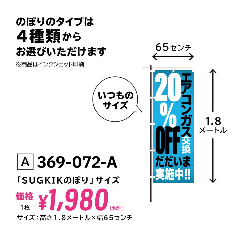 ・サイズ: 高さ1.8メートル×幅65センチ(A:SUGKIKのぼりサイズ)