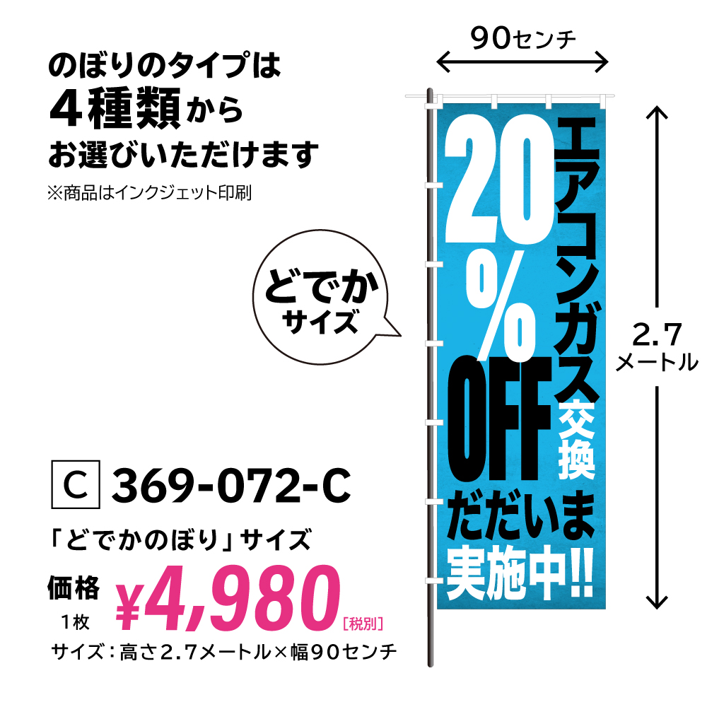 高さ2.7m  ×幅90センチ(C:どでかのぼりサイズ)