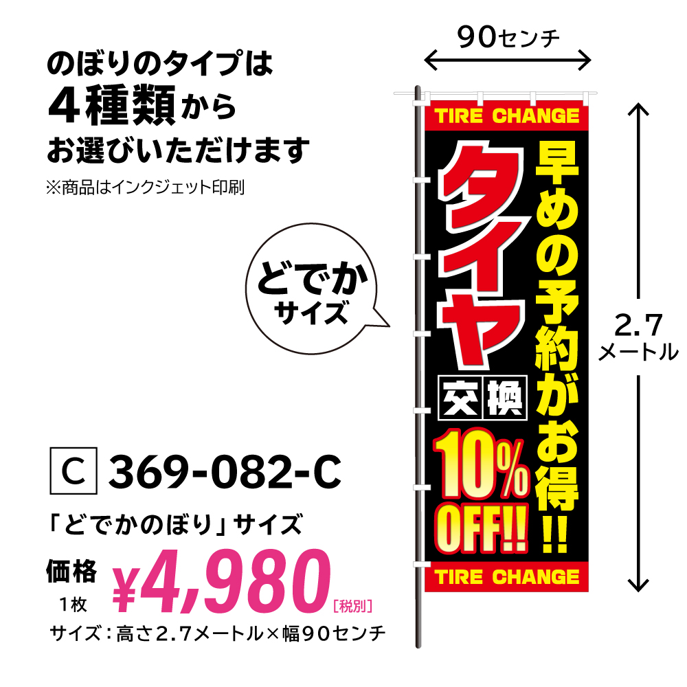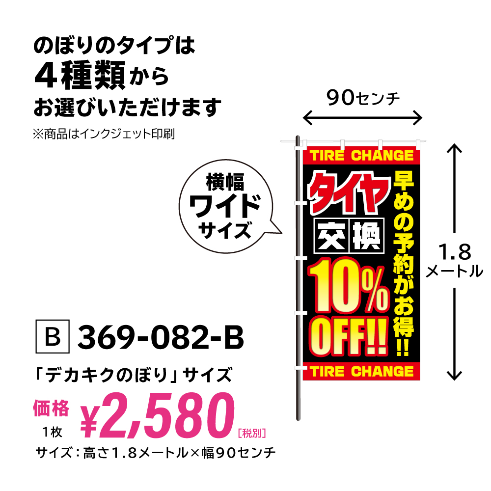 おそきくのぼり:369-082「早めの予約がお得!! タイヤ交換」