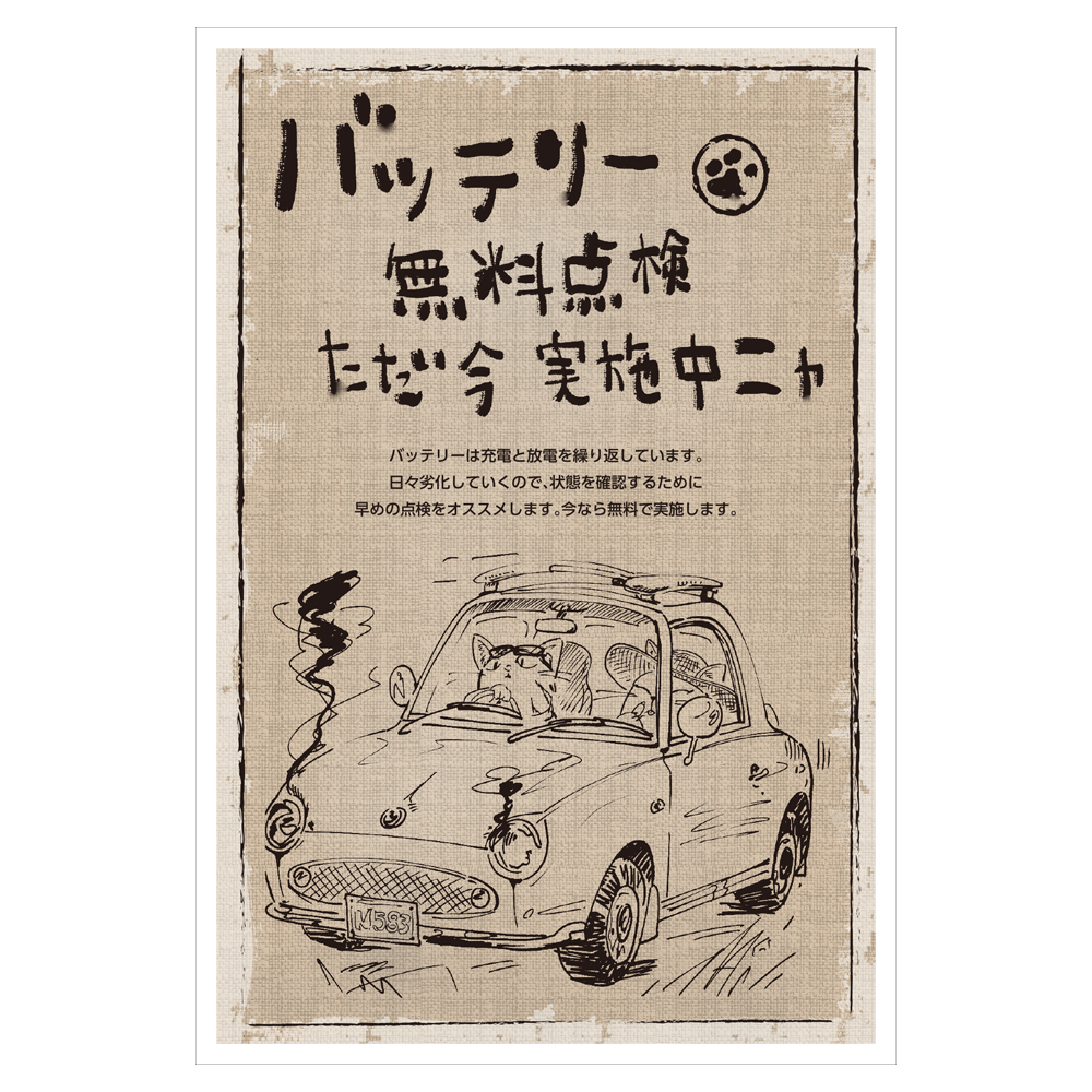 おはがき:46-598「バッテリー無料点検 ただ今実施中ニャ」